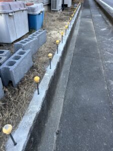 既存のブロック、RC擁壁の天端に差し筋アンカーという金物を打ち込み、