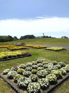 きれいに手入れされた花壇たち。色とりどりの花々が満開。