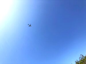 ふと見上げれば、青空に飛行機。