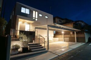 洗練された直線美と白の調和 モノトーンが映えるアーバンモダン・エクステリア