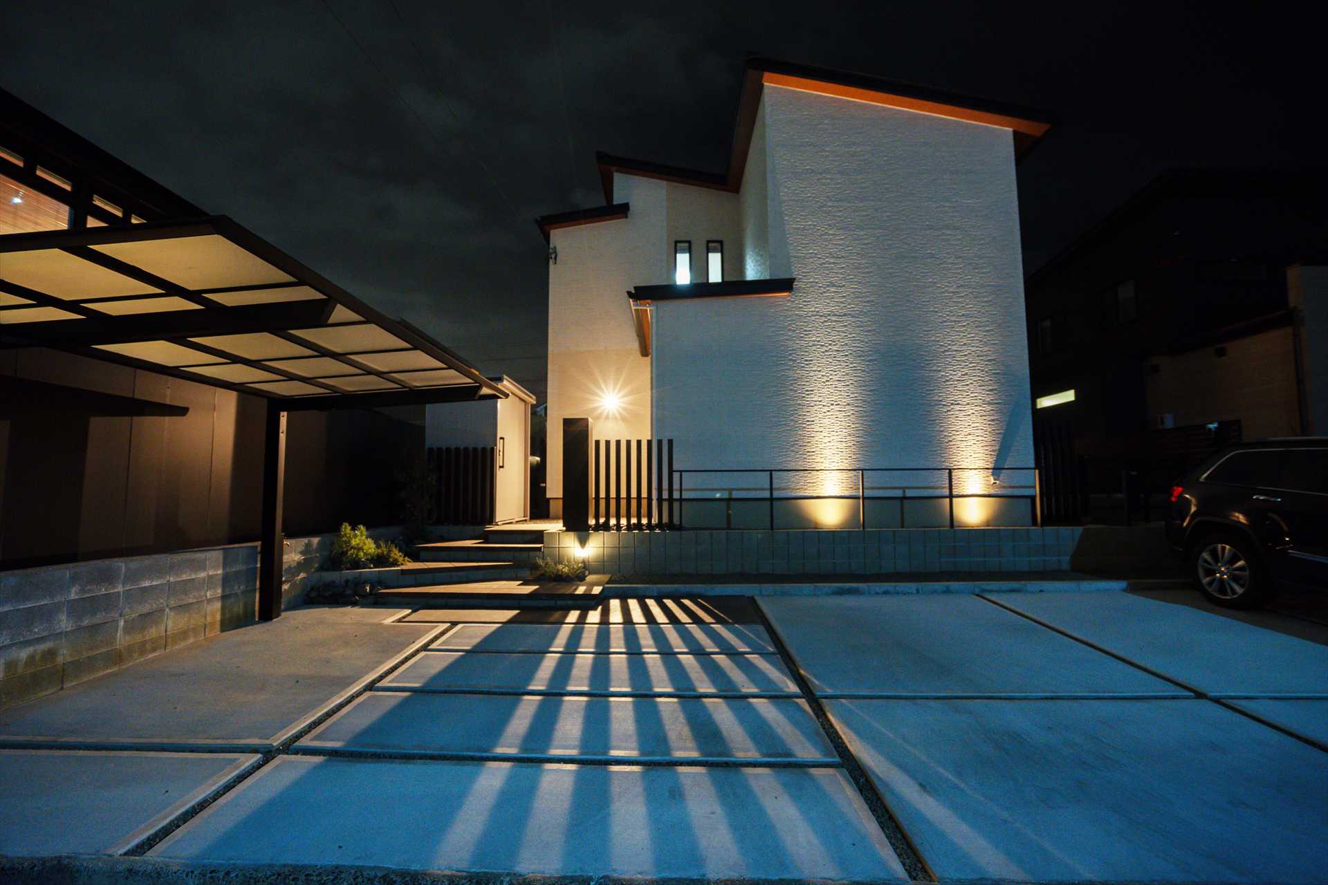 洗練された直線美と白の調和 モノトーンが映えるアーバンモダン・エクステリア